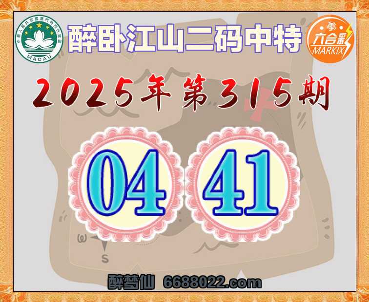 315期:『醉卧江山』 🥓二码中特🥓【04.41】开:04准上榜高手
