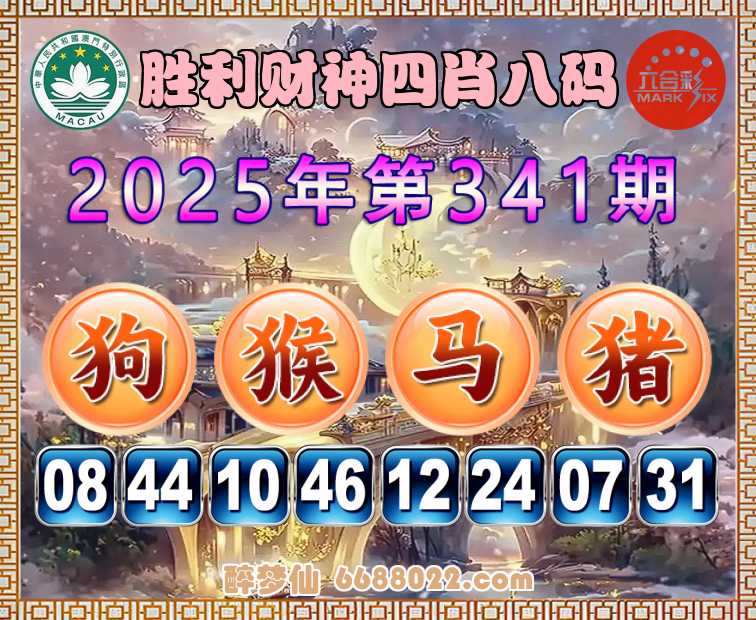 341期:【胜利财神】 🎖️四肖八码🎖️【狗猴马猪】开:00准
